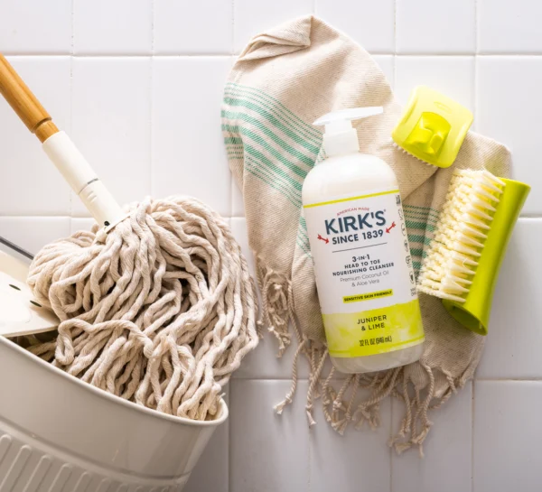 Enhanced with non-GMO Coconut Oil and soothing Aloe Vera. our 3-in-1 cleanser leaves you feeling soft and healthy – from head to toe. Kirk’s nourishing. multi-tasking cleanser simplifies your routine – in the shower. at the sink. and around the house!