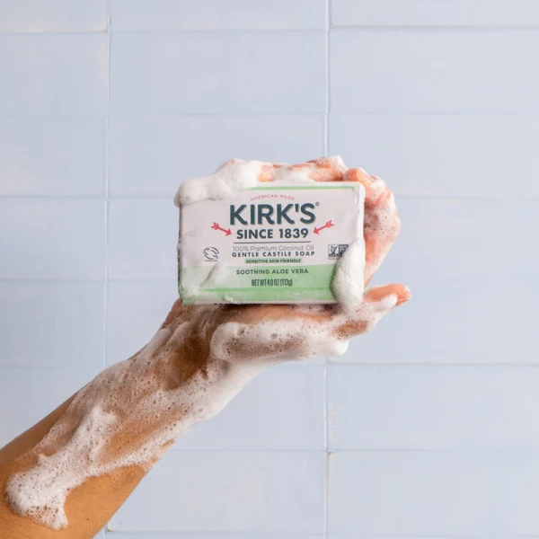 For those with sensitive skin. our castile bar soap with soothing Aloe Vera provides gentle Coconut Castile cleaning. Continuously made since 1839 with 100% Premium Coconut Oil. for a gentle and creamy lather even in hard water. leaving skin feeling soft and healthy.
